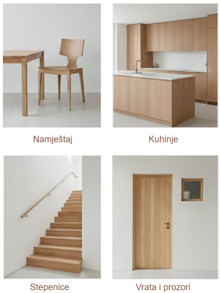 kuhinje, namještaj, skale, pergole, prozore, vrata i sve ostalo što vam je potrebno za vaš privatni ili poslovni prostor.